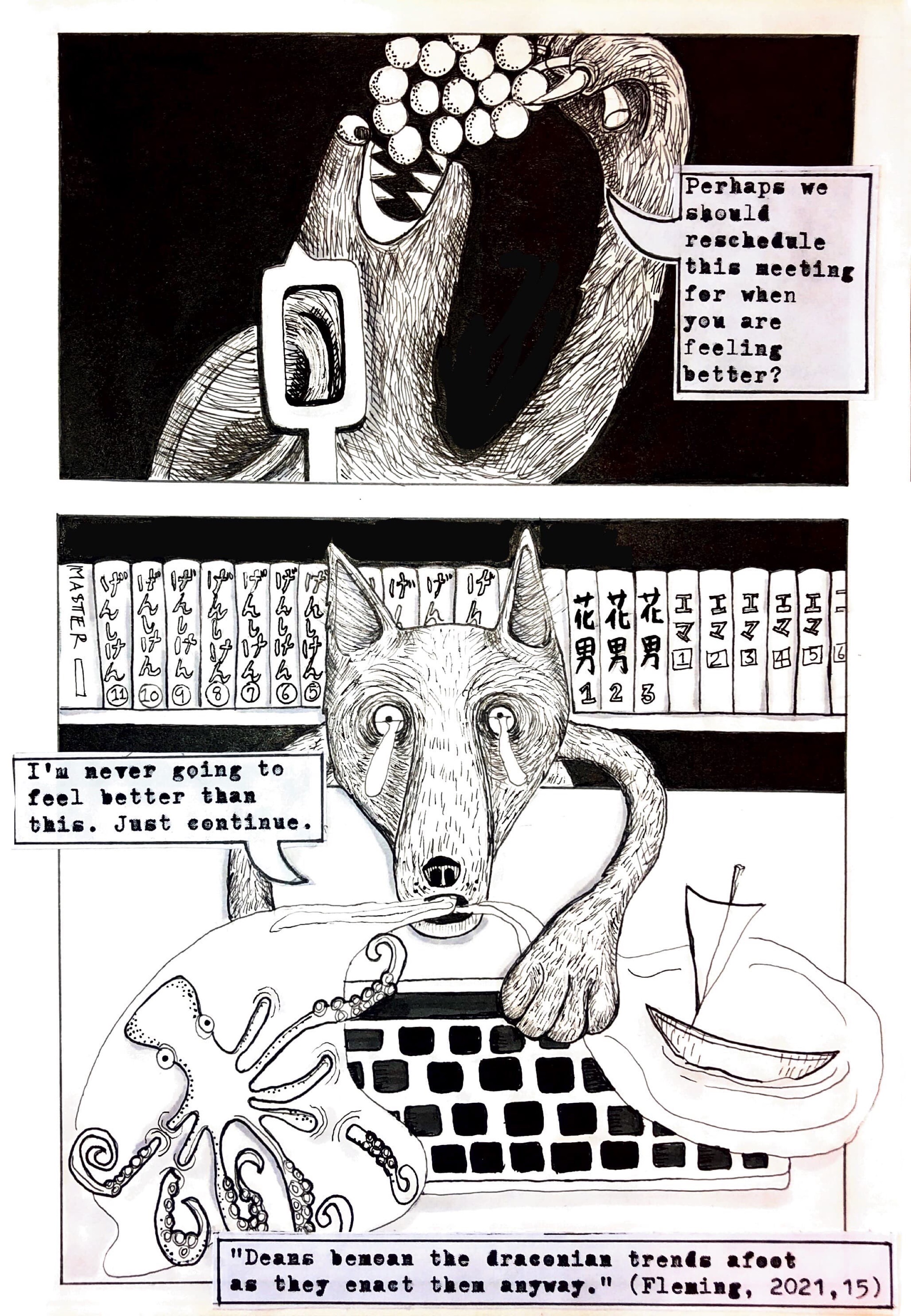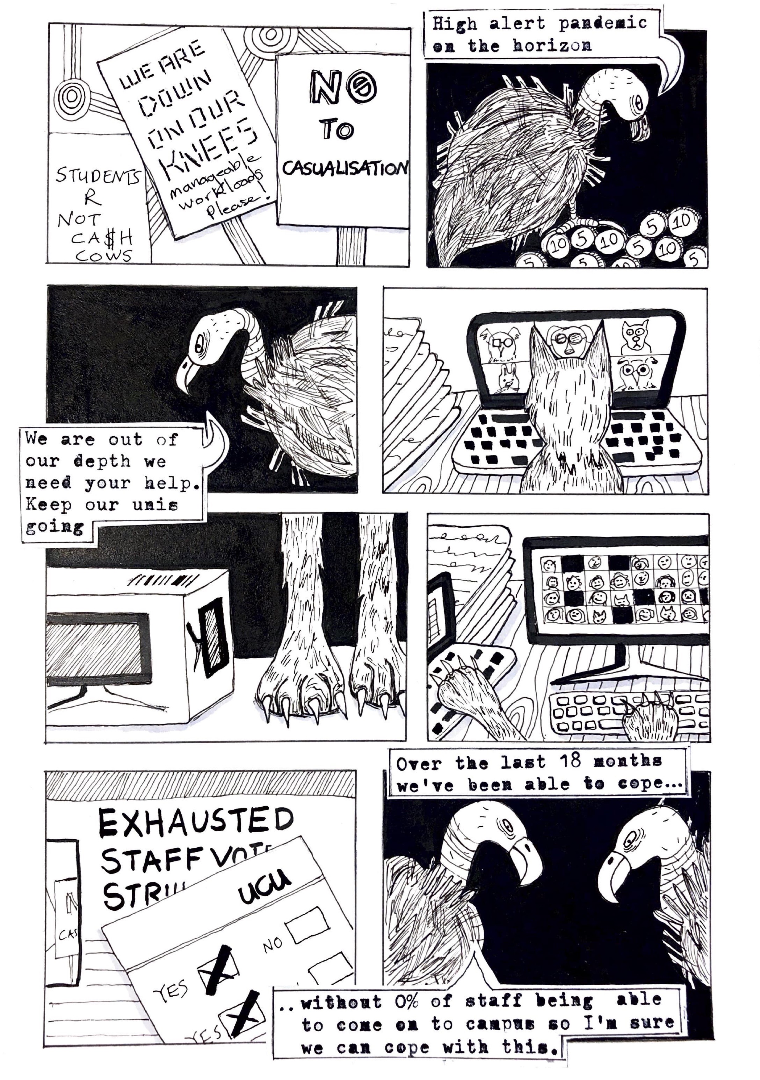 This page documents a series of comic strips about academic life. They are drawn as provocations for thinking about higher education in current times. There are stormy waters ahead and this is my way of thinking about the issues. Publications and conference presentations related to these comics can be found at the bottom of the page.