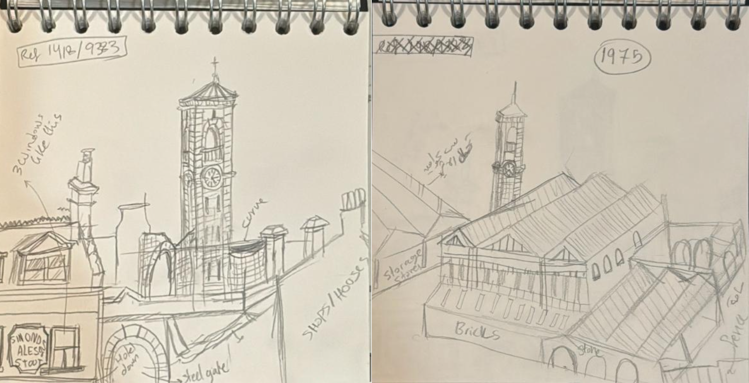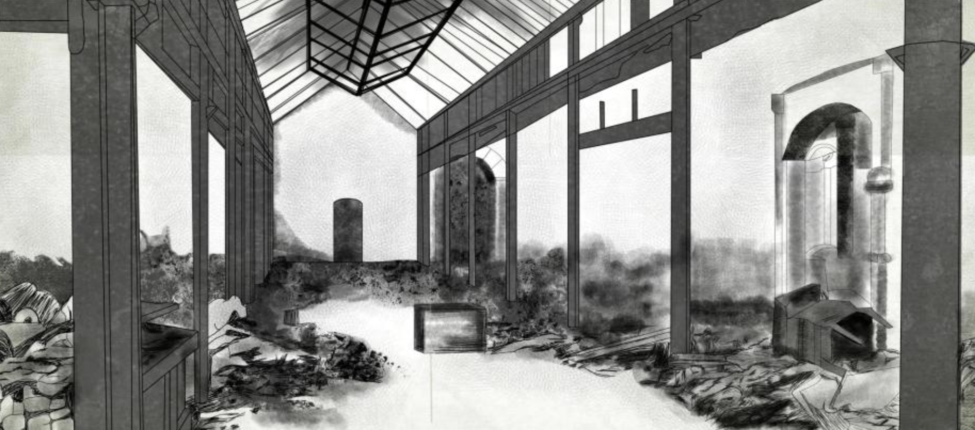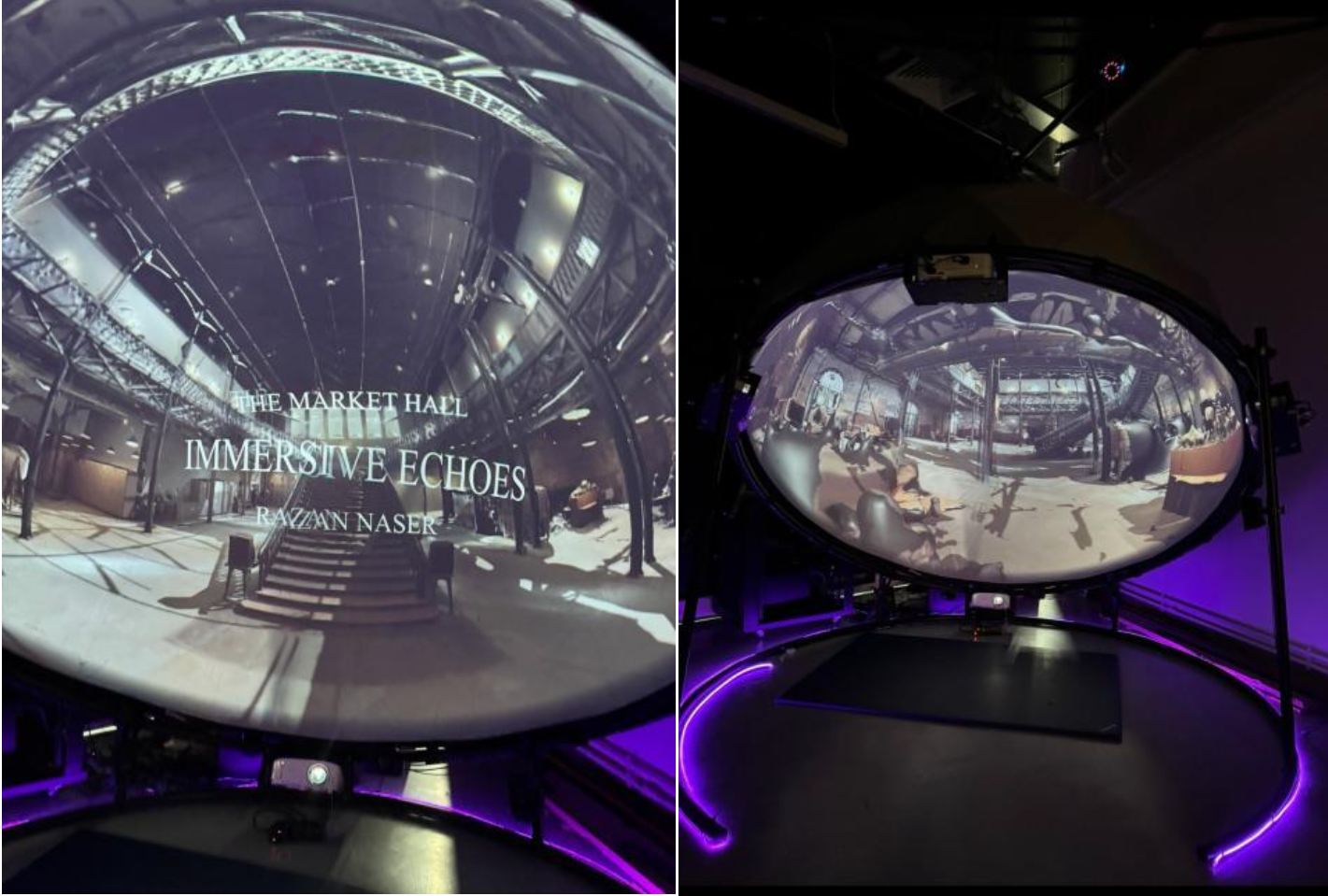 For the second term of Design Lab Razan made a site-specific work for the Market Hall fulldome, Plymouth. The Market Hallis situated in a historic area of Plymouth and so she set about researching changes to the use of the historic building and area using archival material held by The Box museum and then used this to make a 360 mixed-media film as a response to what she describes as “a response to cultural memory loss through urban regeneration”. Leading into this she undertook 3D scanning, sketches, speculative storytelling, and an exploration of glitch aesthetics.