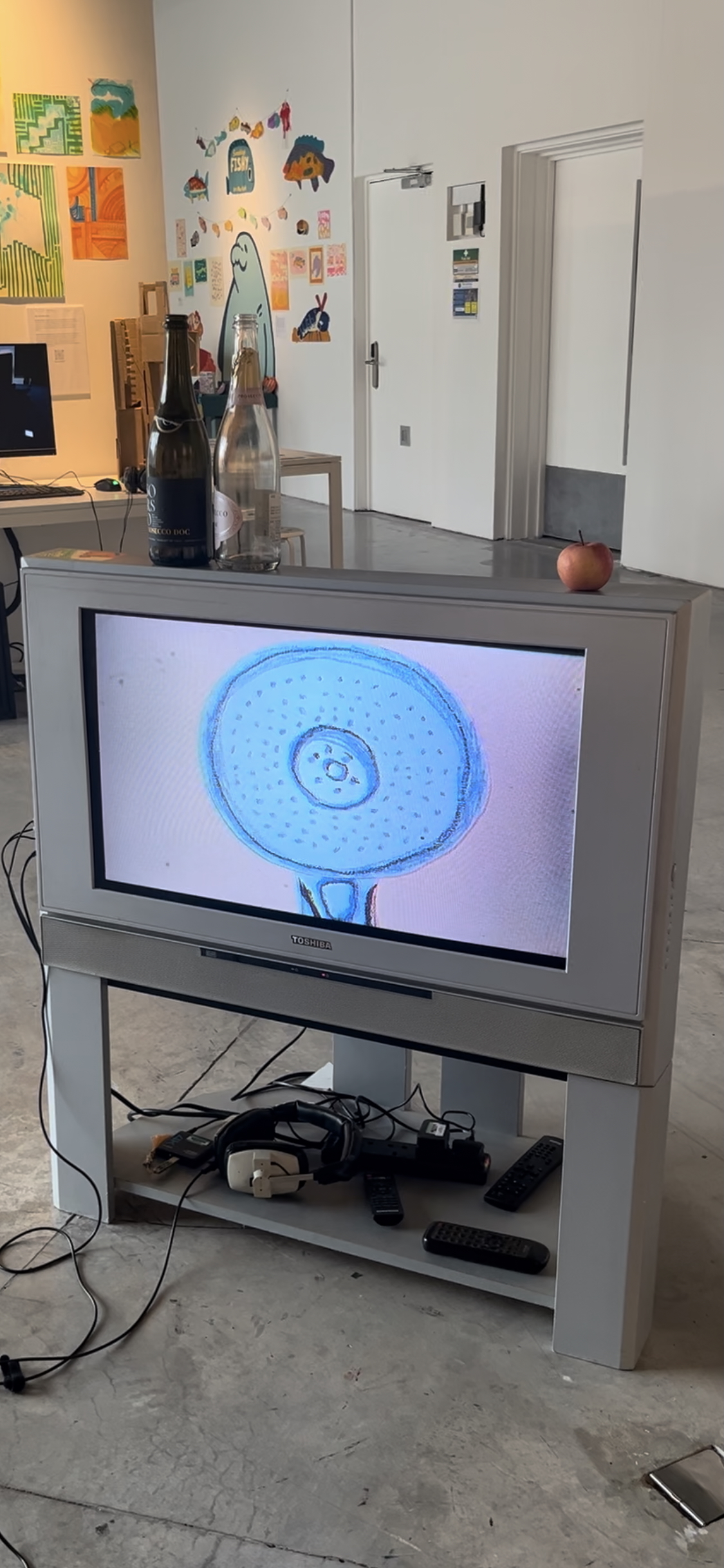 Across Design Lab 2 and final project Oliver focused on the topic of paper. Initially the piece was a client project focused on making something to help advertise the Illustration and the Paper Artefact conference at the University of Falmouth. However, as part of the work he began to explore people’s relationship to paper, analogue making as a rebuffal of AI and his own generations attitudes to work. The final piece became an animation made from paper called “I Don’t Want to go to Work”. In the final installation he chose to show the animation on a retro TV with artefacts related to his animated narrative resting on top.