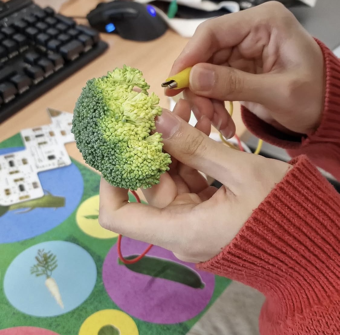 Oliver came from a background in illustration and in Term 1 he worked with Tamar Grow Local to produce illustration and animation that would accompany a cookery book he had been involved in previously. He used an experience design approach to research to further explore Plymouth City Council’s agenda of 'People Connecting Through Food' by undertaking community based workshops in schools as well as exploring how Makey Makey could directly connect to food and offer new ways for children to interact with it while he engaged children in understanding where food comes from, the relevance of seasonal vegetables and how to use fresh vegetables in season to make a meal.