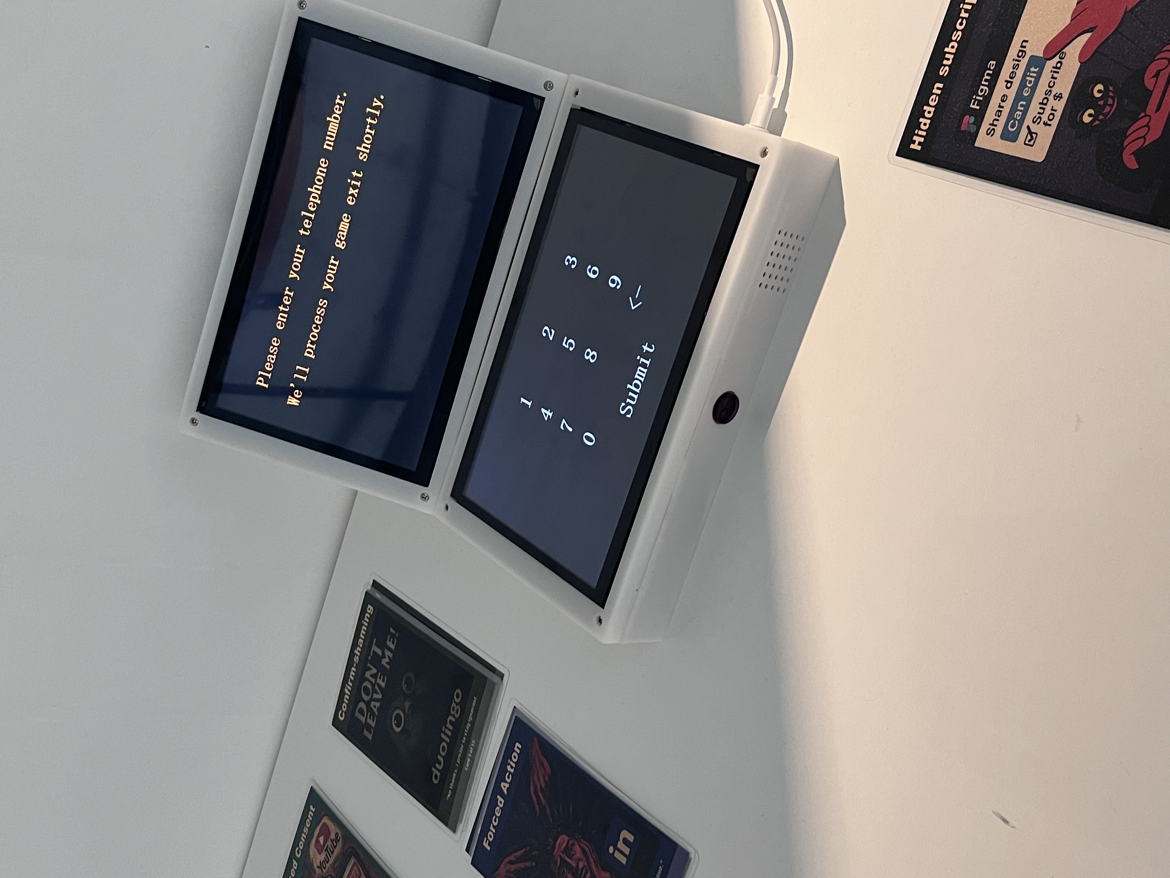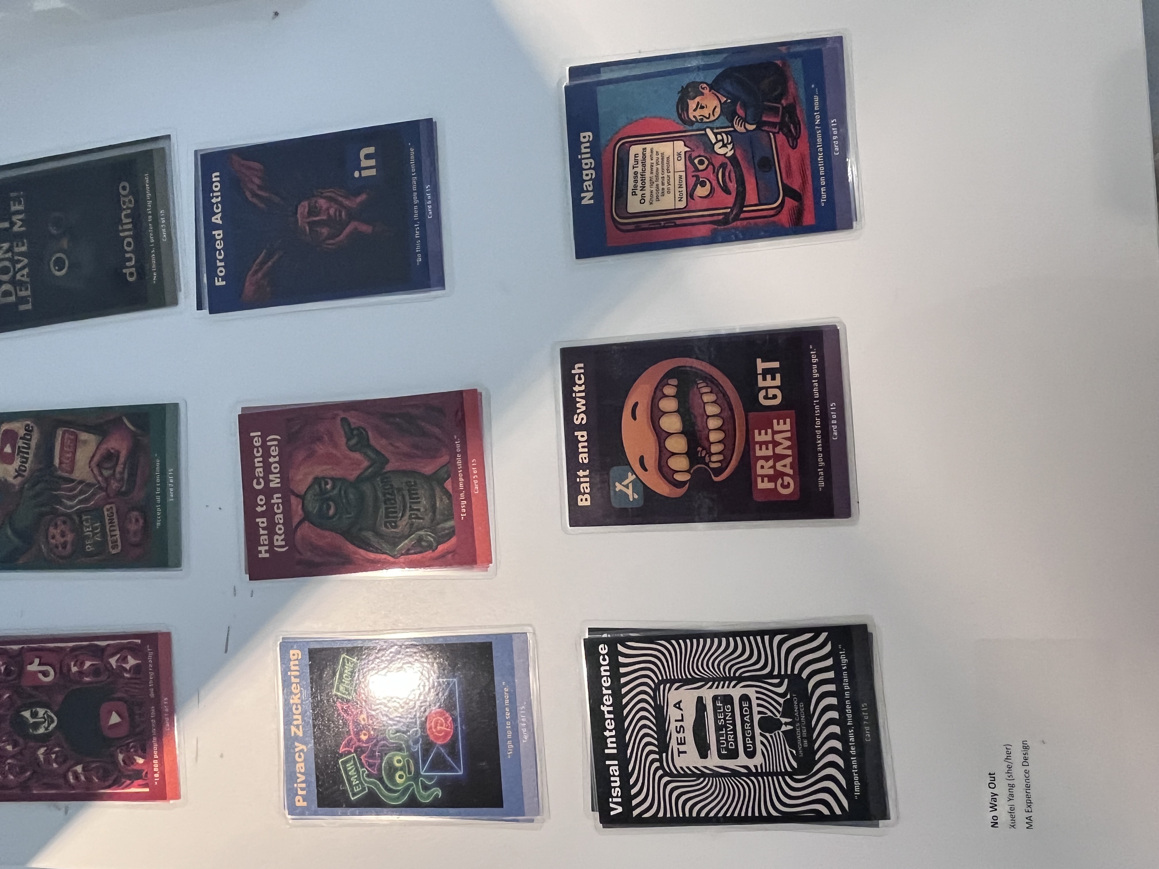 “No way Out is a critical interactive installation that exposes the hidden coercions of digital platforms through embodied experience. Building on dark pattern taxonomies and the epistemic tradition of play, it extends critical design into a performative mode of enquiry. The work stages behavioural extraction, datafication, and affective coercion not as abstract concepts but as lived encounters. Loops of frustration, hesitation, and deceptive closures make coercive logics perceptible only when enacted, turning critique into situated knowledge. In doing so, the project foregrounds the ethical stakes of interface design: How systems that appear functional can erode autonomy, obscure consent and normalise manipulation, while asking how design might instead real its politics and foster critical reflection.” (Words by Xuefei)