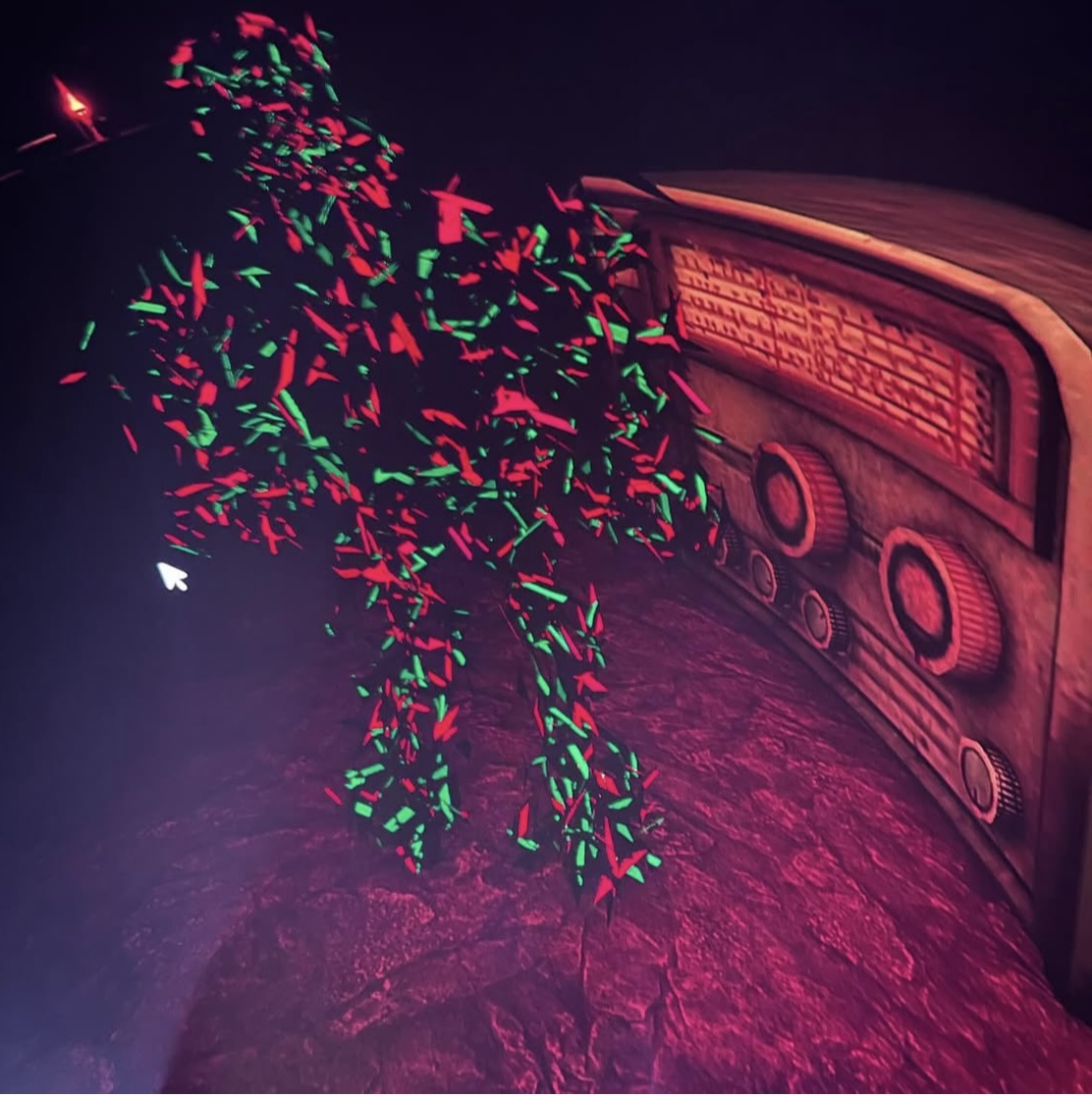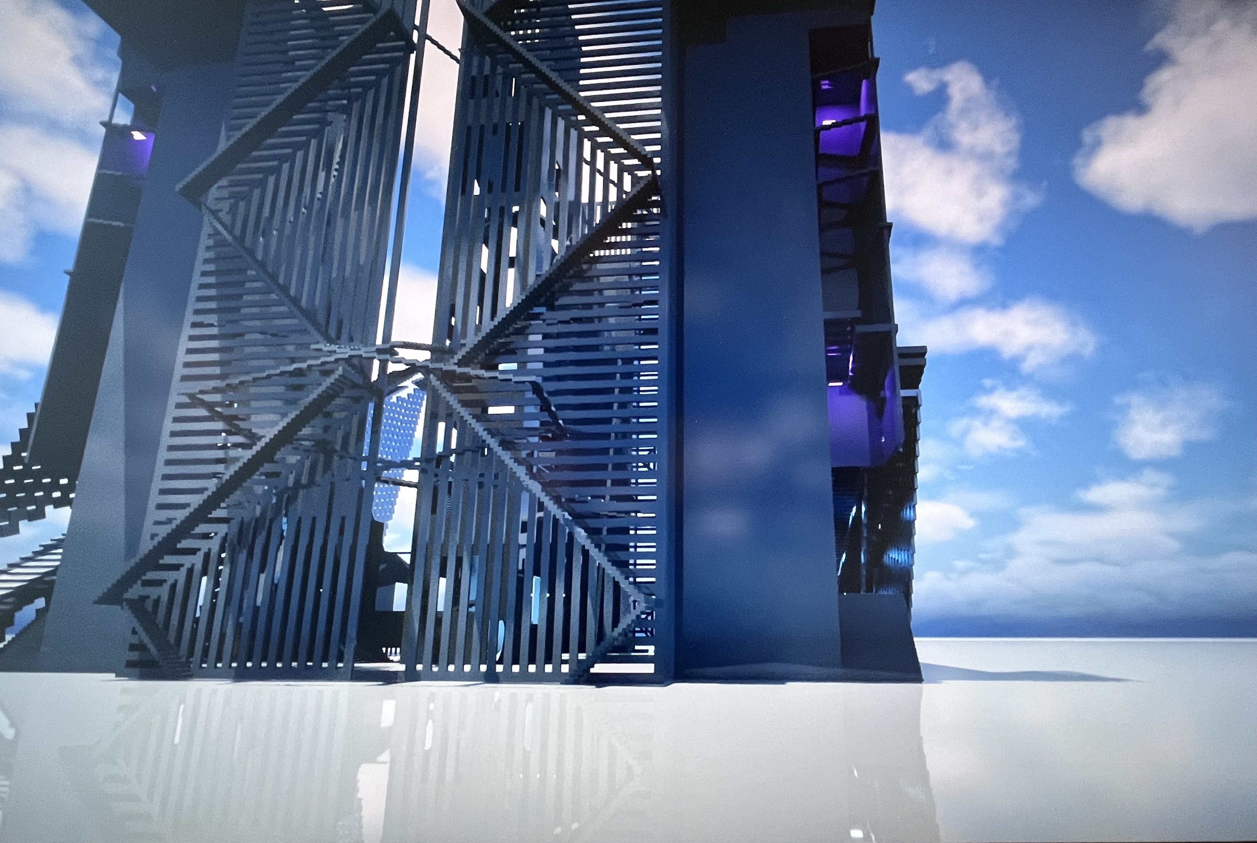 Alfie created a world in a game engine to capture the simultaneous isolating and self-soothing experience of complete dissociation from the world- the particular kind of escapism, he says, his brain likes to create during moments of extreme mental or sensory input. The work refers to the feeling of leaving behind his surroundings in favour of an abstract internal illusion of stillness.