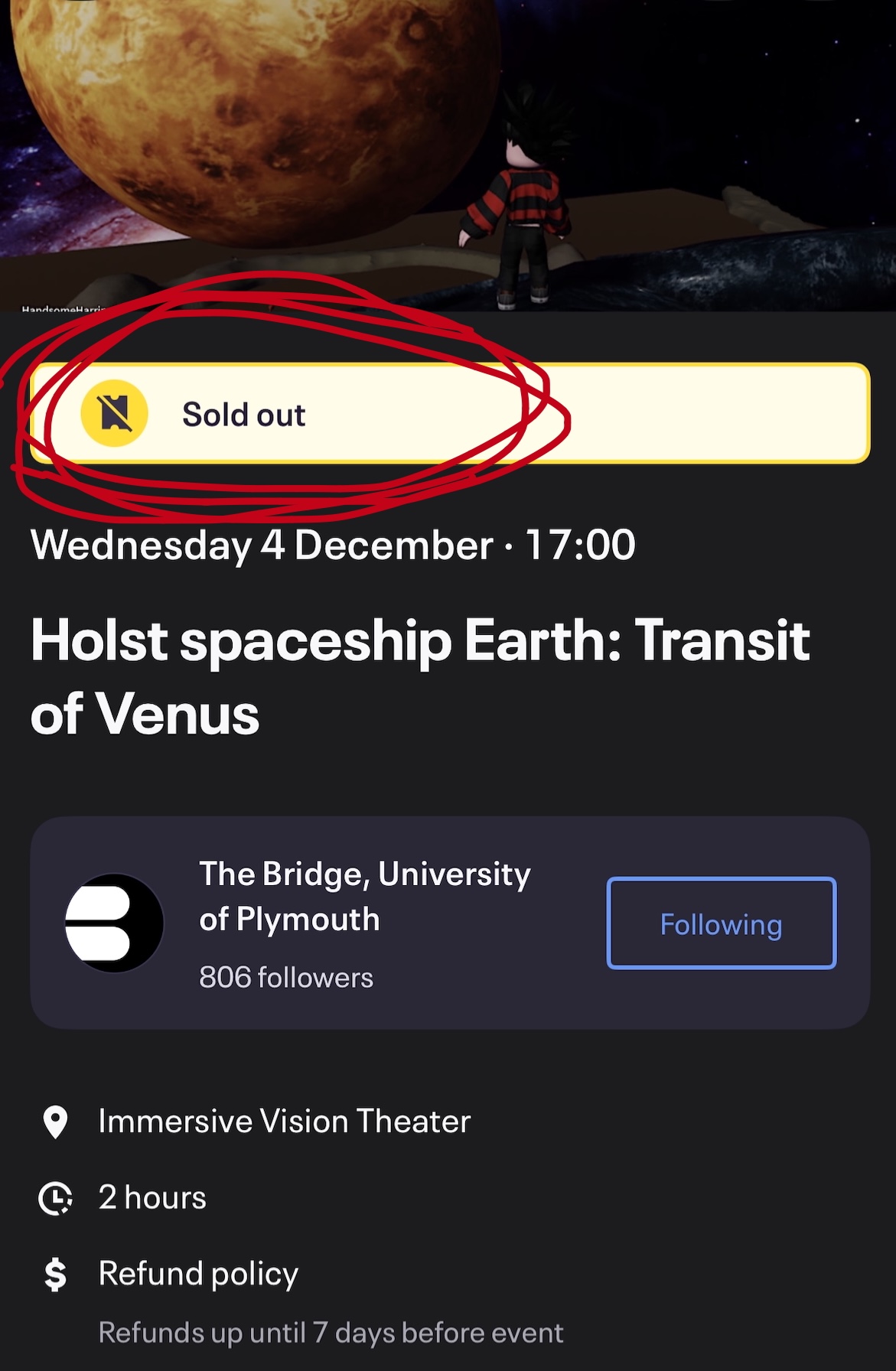 We also collaborated with and hosted the Holst Spaceship Earth event in the Immersive Vision Theatre, linking students to a live research project and the variety of artists involved in that: