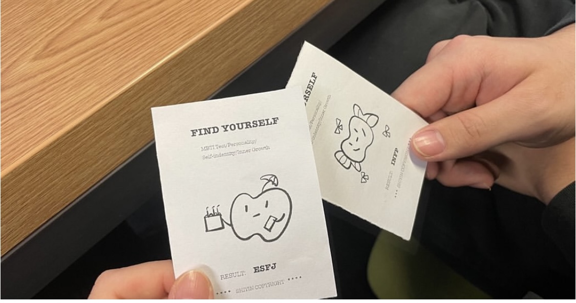 In the final work an interaction device was made using Arduino to encourage people to undertake personality testing while meeting with friends for coffee or dinner. The final results are printed as a receipt that can be kept or gifted to friends.