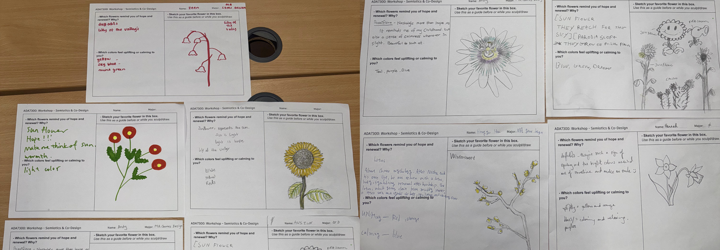 Information Theory. It was shared how designing experiences requires an understanding of information theory on several levels. First in thinking about what information/ story/narrative/ data will be conveyed in the experience. Secondly, to understand that information systems affect how we create an experience. This was explored in relation to systems, culture, history and more-than-human ways of communicating. Related to this, students were also taught multimodal theory and how the combining of modes of communication affects experience but also how the study of modes can bring about greater insight into the topic students chose to work with. To understand this, questions were asked such as: What is a mode? What does it mean to “transduct” information, a story element or an entire narrative from one mode to another? How do modes relate to culture and history? What is lost and what is gained when one mode is used over another?