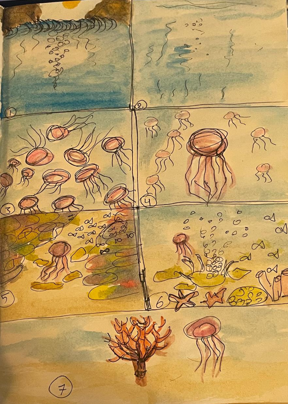 In Term 1, Razan decided that she would focus on creating an fulldome piece based on the topic of wellbeing. Specifically, she was interested research that has shown how young adults her age are suffering from stress and anxiety. In relation to this she wanted to create an immersive experience to help the audience feel calm. Using research methods taught in the term she decided to settle on an underwater theme.